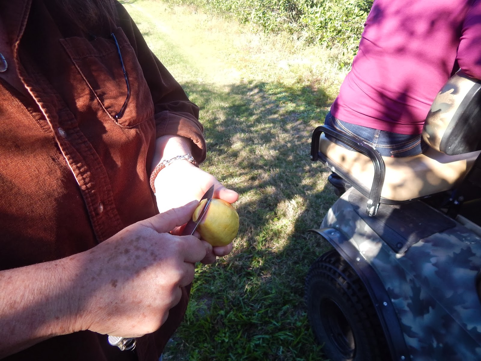 We also went by to see Charlotte and Verna's father because he had his own orchard in his yard and we had to check on the hog for the feast.